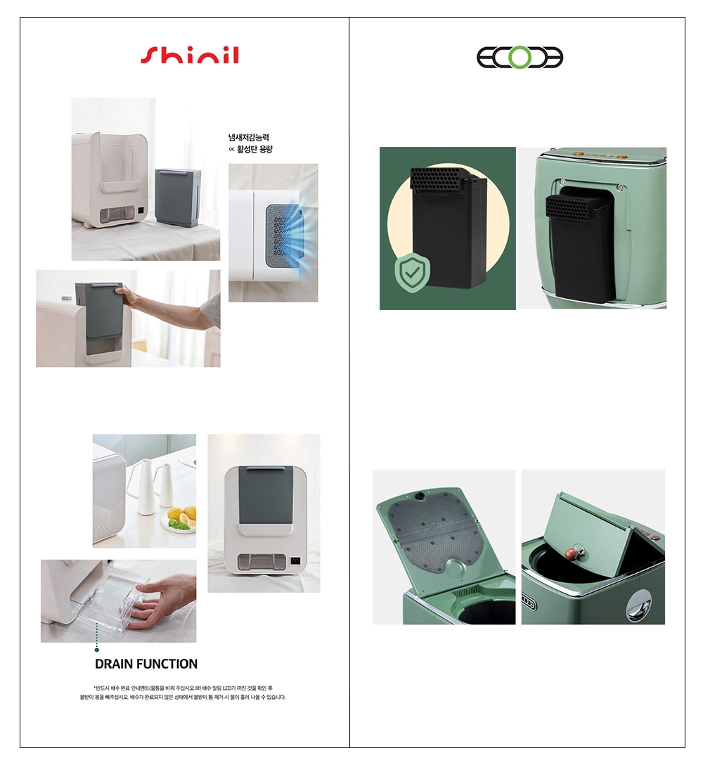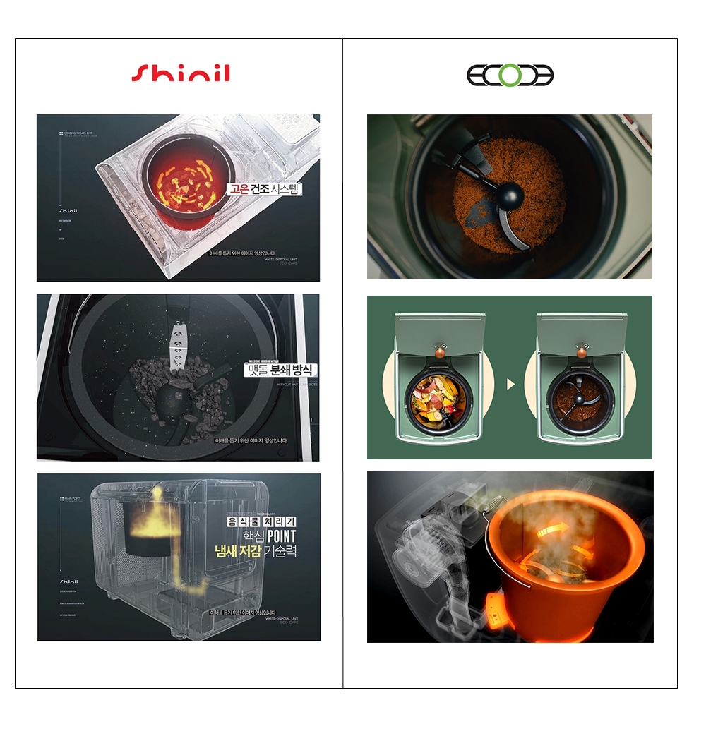 즉 가성비제품의 신일음식물 처리기와 감성적, 실용성 극대화 제품인 에코체음식물 처리기라고