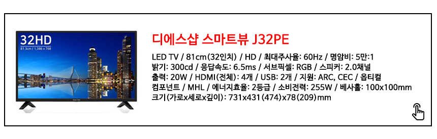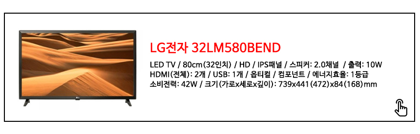 32인치 TV는 원룸이나 개인방 세컨드 TV로... 캠핑용 야외에서 즐길수 있는 TV 사이즈로 알맞으면서 가격대는 물론