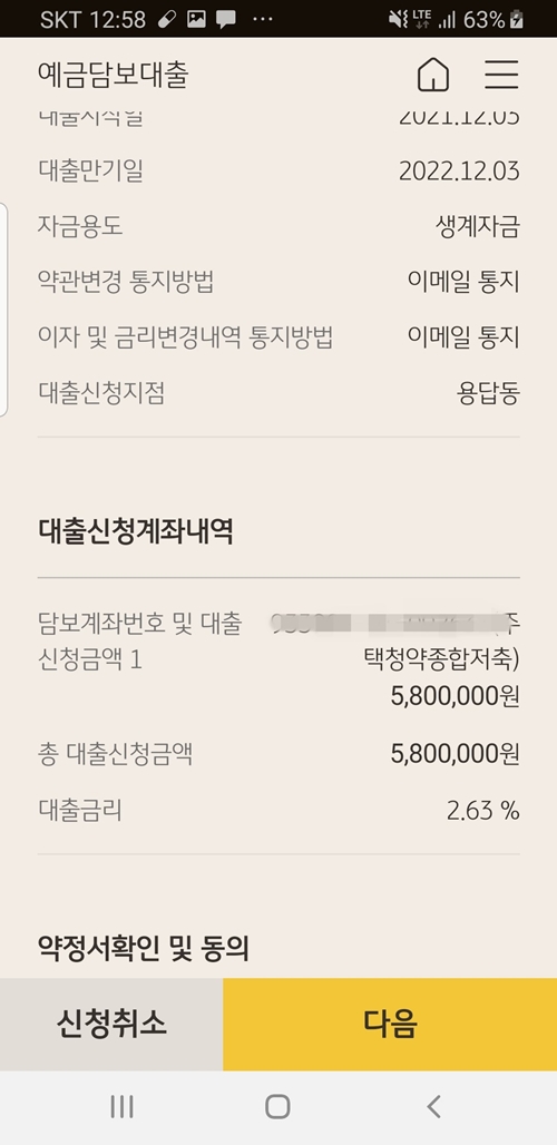 13. 최종 대출 신청 내역과 약정서 확인및 동의가 끝나면 얼마