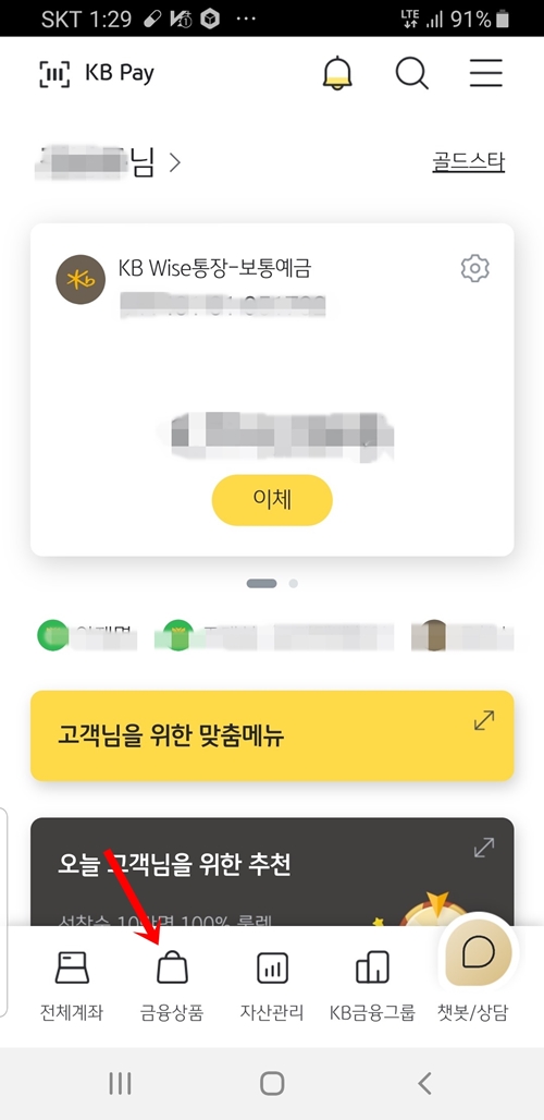 01. 국민은행 어플 메인 하단 금융상품을 선택합니다